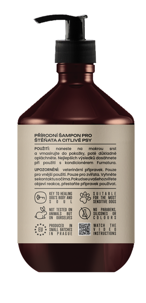 Vmasírujte do mokré srsti od kořínků ke konečkům. Důkladně smyjte. Pro ideální výsledek dokončete mytí Furnatura kondicionérem z růže. Šampon možno ředit vodou (pro snadnější nanášení). Pokud byste chtěli s výběrem poradit nebo si šampon vyzkoušet na živo, stavte se v našem psím salonu Dogtownu, rádi Vám poradíme.