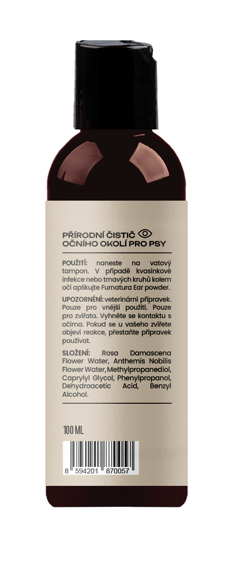 Apply to a cotton pad and carefully clean the area around the eyes or in between the folds (breeds like a pug etc.). If the treated area tends to get moist, after cleansing with the solution apply Furnatura Ear Powder afterwards. Avoid contact with eyes.